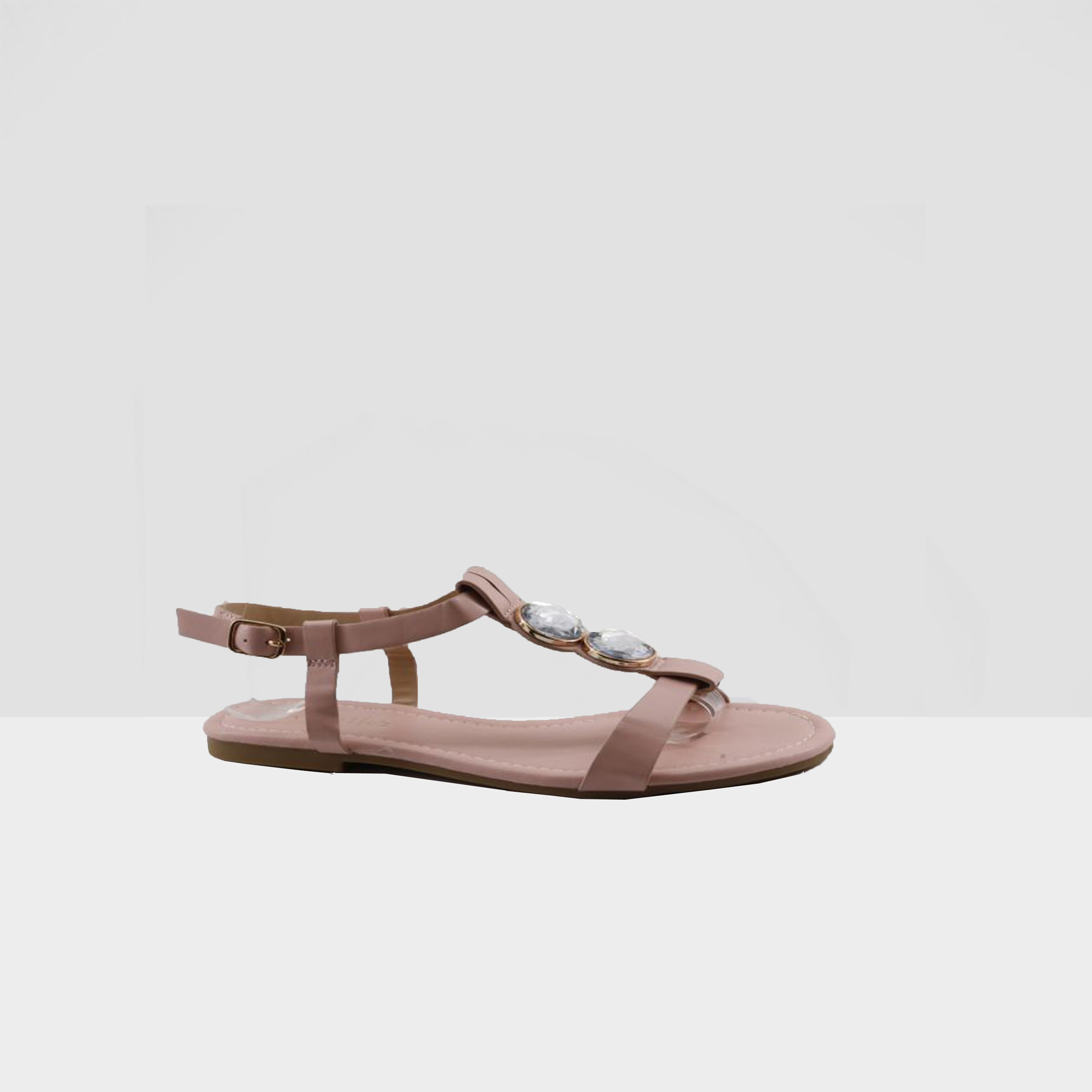 LADIES FLAT OPEN TOE SANDAL WITH STONES