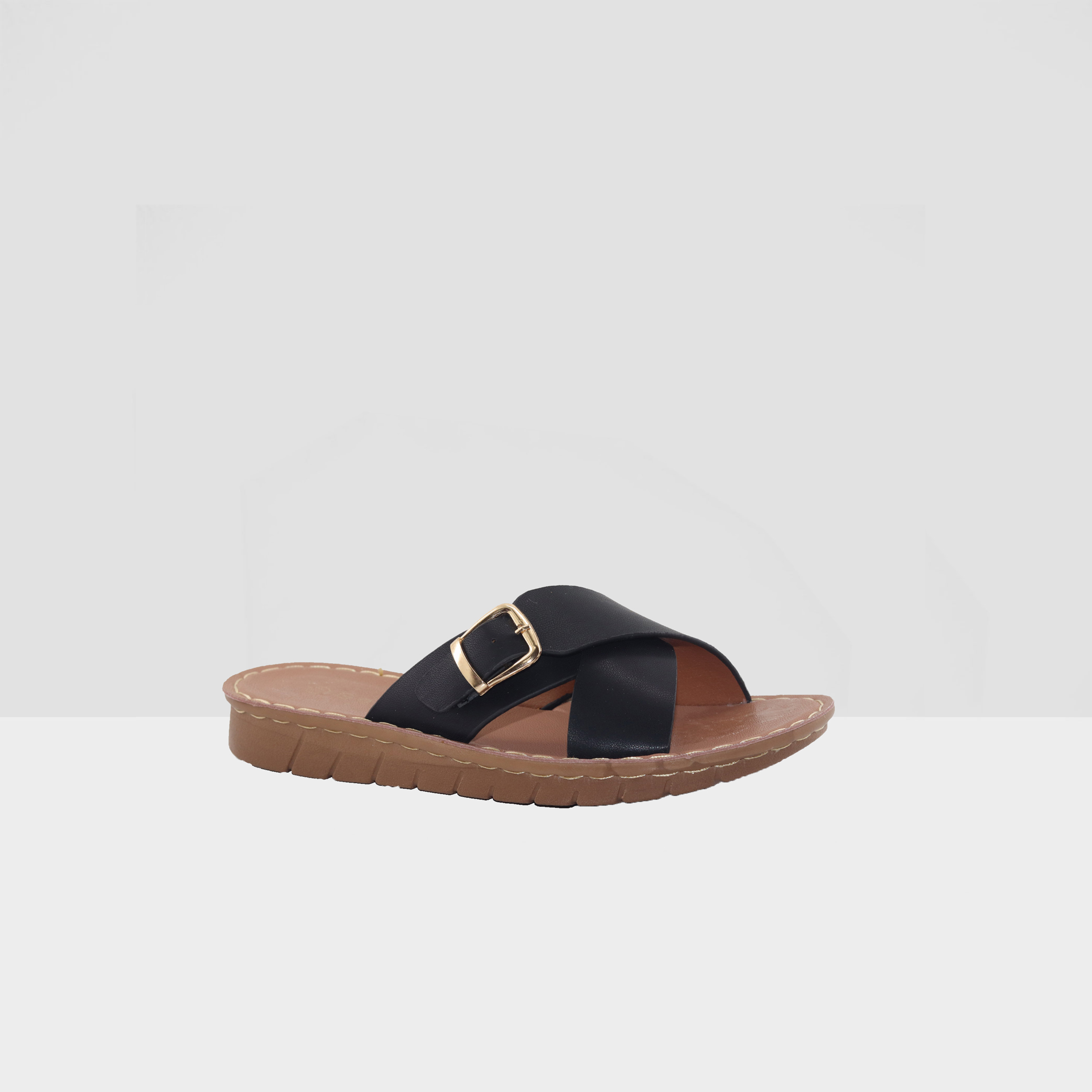 LADIES FLAT OPEN TOE SANDAL WITH BUCKLE